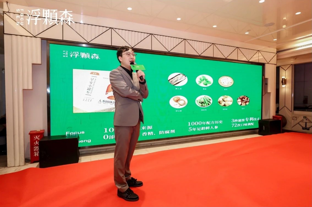 发布会最后,冯佳毅先生将 “每天八杯水、两杯浮颗森” 的健康理念slogan传递全现场观众,也寓意着浮颗森希望能够每天从始而终地陪伴着大家的健康。此外,冯佳毅先生还重点向大家展示了早安小罐参和晚安小罐参两款产品的配方及应用场景一—早一杯早安小罐参,开启美好元气的一天;晚一杯晚安小罐参,放下全天的疲倦与劳累。